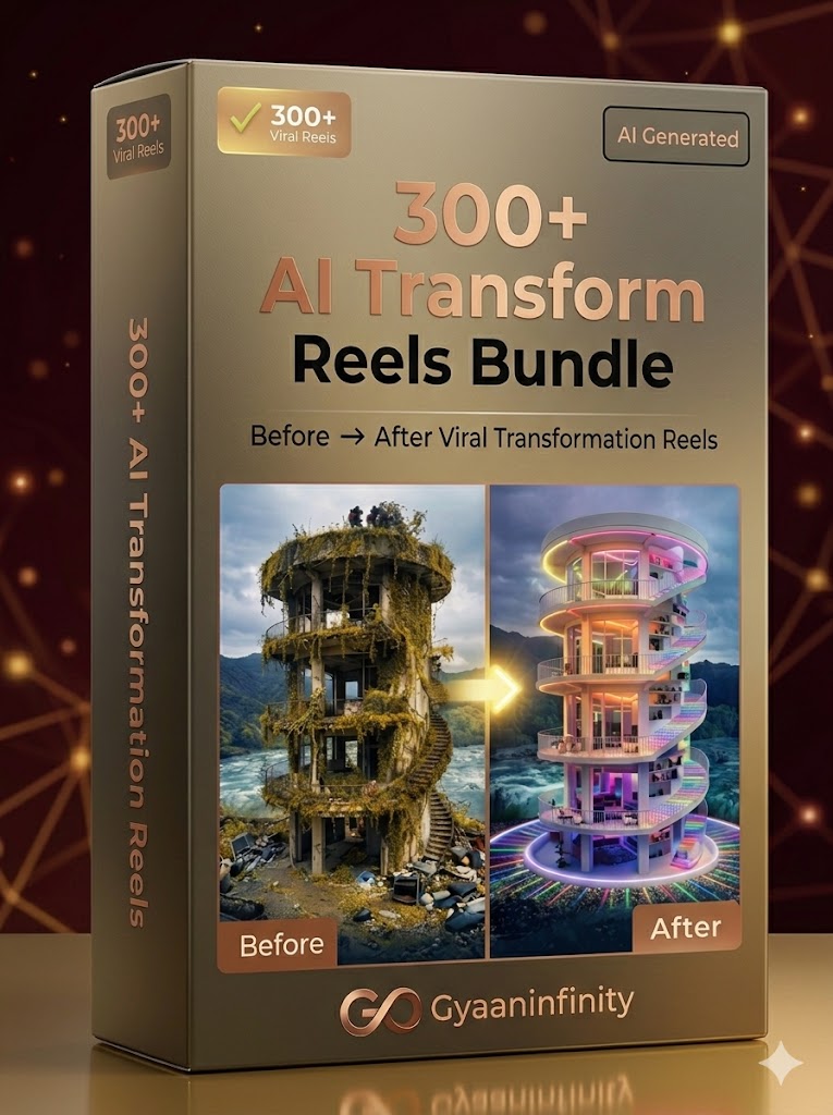 Get the Ultimate 300+ Viral AI Transform Reels Bundle along with all the exclusive bonuses for a limited-time price of just ₹69.
